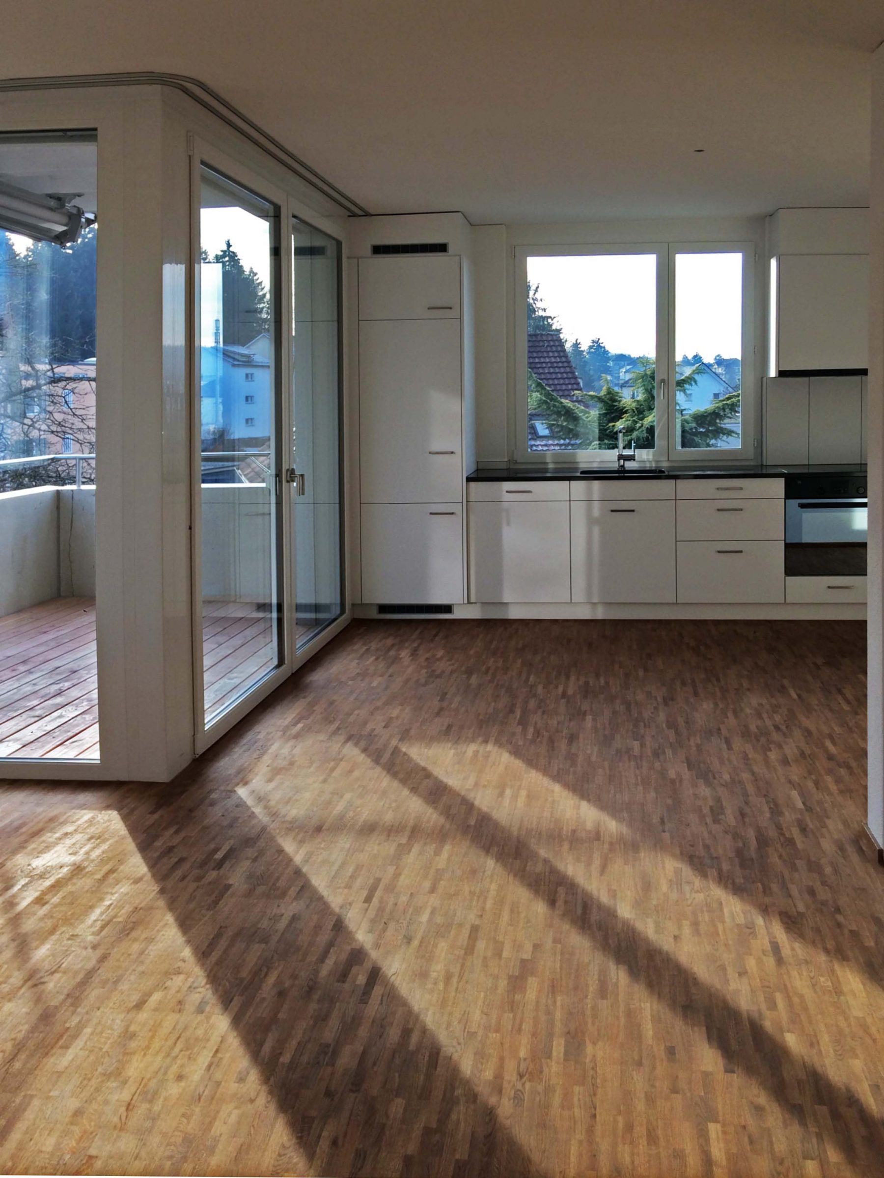 Pendant mon travail chez SLIK Architekten, j’ai été responsable de toute l’exécution de trois nouveaux immeubles avec au total seize appartements. Le design et choix des matériaux pour les détails peuvent être observée dans les cages d’escalier, avec une main courante en bois et le garde corps en métal avec un revêtement de couleur vert clair, ainsi que dans le salon, avec le choix du parquet au sol et les couleurs pour la cuisine, et dans la salle de bains avec le choix de carrelage et d’élément sanitaire.